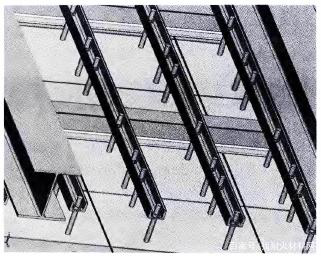 第三種是預制件上的錨固件掛在頂部工字鋼上,見圖3。此方法的特點是安裝和檢修極為方便,而且連接牢固。