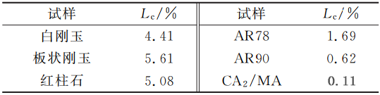 (2)板狀剛玉、白剛玉和紅柱石與堿鹽反應后生成大量的低密度化合物,所引起的體積膨脹較大,線變化率均不滿足耐堿腐蝕標準。