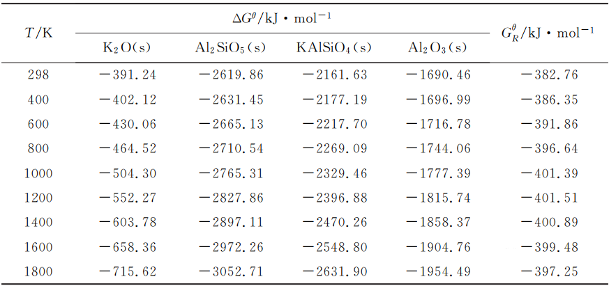 K2O(s)+2Al2SiO5(s)→2KAlSiO4(s)+Al2O3(s)(5)