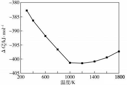 圖1反應式(5)中反應吉布斯自由能隨溫度的變化關系