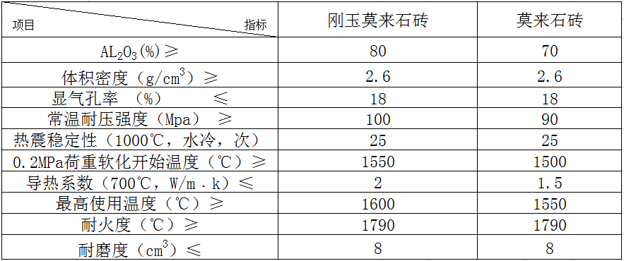 莫來石磚耐火度較高,可達1790℃以上。荷重軟化開始溫度1600~1700℃。常溫耐壓強度70~260MPa。抗熱震性良好。有燒結(jié)莫來石磚和電熔莫來石磚兩種。燒結(jié)莫來石磚以高鋁礬土熟料為主要原料,加入少量黏土或生礬土作結(jié)合劑,經(jīng)成型、燒成而制成。電熔莫來石磚以高礬土、工業(yè)氧化鋁和耐火黏土為原料,加入木炭或焦炭細粒作還原劑,成型后采用還原電熔法來制造。電熔莫來石的結(jié)晶比燒結(jié)莫來石大,抗熱震性比燒結(jié)制品好。他們的高溫性能主要取決于氧化鋁的含量和莫來石相與玻璃分布的均勻性。