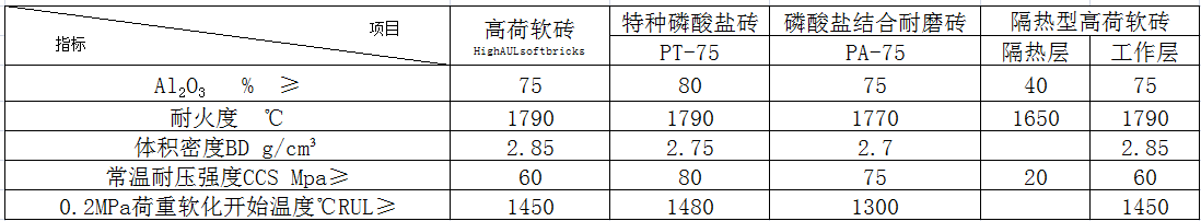 高荷軟磚是以有之高鋁礬土為原料,用磷酸鹽做結(jié)合劑制成的輕燒磚,用于小型水泥回轉(zhuǎn)窯。高荷軟磚、藍晶石磚、高溫高強耐磨磚有效克服了磷酸鹽結(jié)合制品荷重軟化溫度低的不足,具有荷重軟化溫度高,高溫強度高、耐沖刷、抗侵蝕,熱震穩(wěn)定性優(yōu)良等特點,主要是用于水泥、石灰、金屬鎂等熱工設(shè)備上。