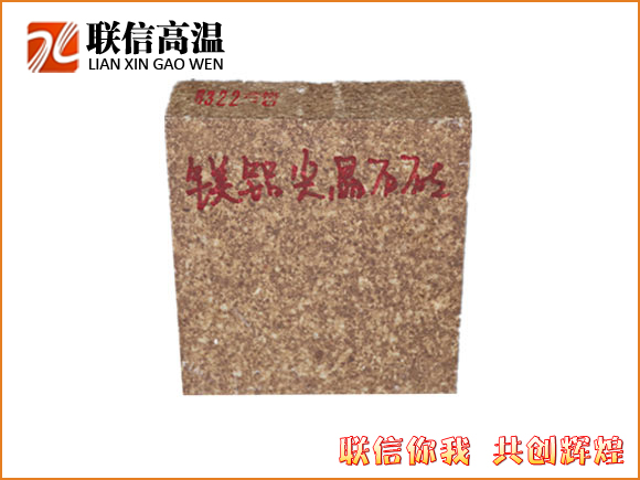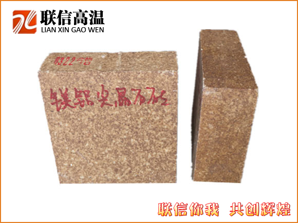 鎂鋁尖晶石磚是以方鎂石及尖晶石為主要礦物的高檔堿性耐火材料、高溫燒結而成,同時添加特定礦化劑使制品晶相顆粒之間直接結合。具有強度高、熱震穩定性優良、抗化學侵蝕能力強等特點。主要用于水泥回轉窯上下過渡帶及要求耐高溫同時耐熱震的熱工窯爐設備上。